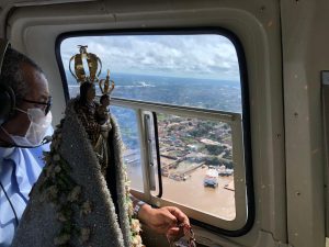 Ao final do sobrevoo, Pe. Luiz Carlos explicou, em um vídeo, que o trajeto foi feito “conduzindo a imagem de Nossa Senhora de Nazaré, pedindo que Ela, na sua bondade de mãe, abençoe este povo que tanto a ama e venera”.
